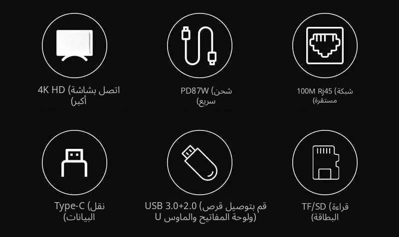 المنافذ المتوفرة (8 in 1):