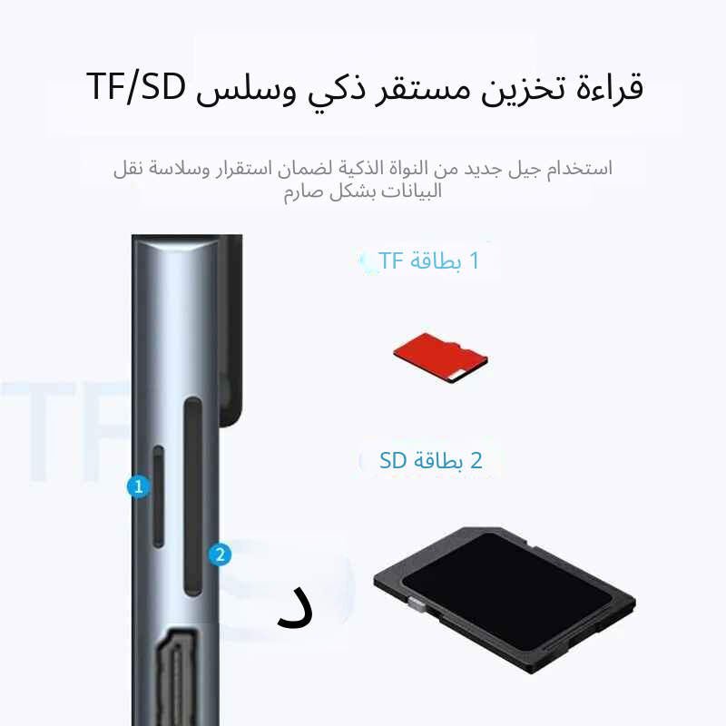 منفذ SD card + منفذ TF (Micro SD): لقراءة بطاقات الذاكرة بسهولة.