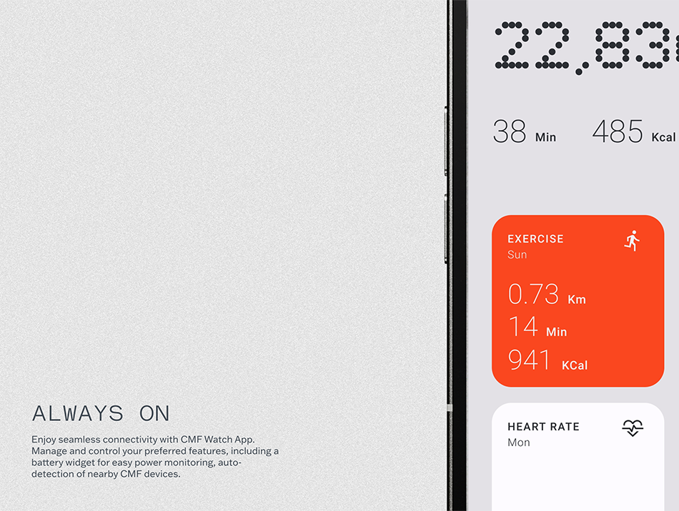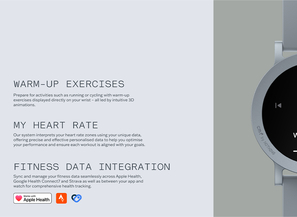 تعمل مع هواتف Android و iOS عبر تطبيق CMF Watch لعرض الإشعارات، الطقس، المنبه والمزيد.
