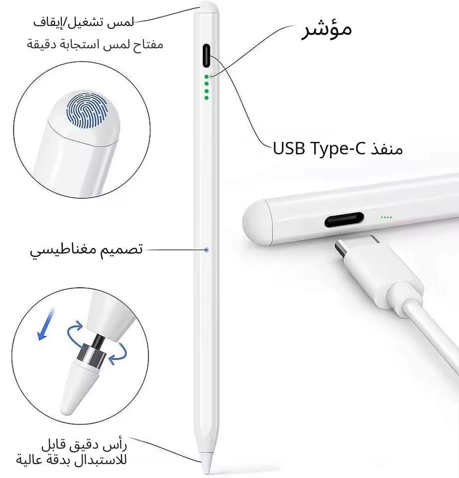 قلم لمس أنيق ودقيق، يعمل مع معظم الهواتف الذكية والأجهزة اللوحية التي تحتوي على شاشات تعمل باللمس. مثالي للرسم،و التصميم و تدوين الملاحظات، أو التنقل السريع بين التطبيقات